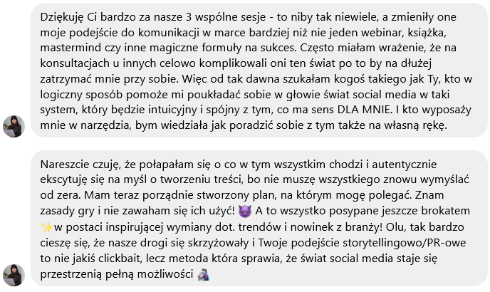 W ramach mentorigu docieramy do sedna strategii, tak abyś nie miała wątpliwości, jak komunikować na social mediach.